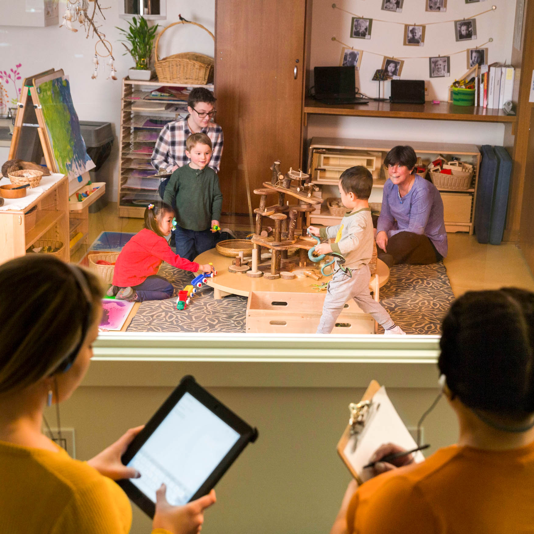 College students learned about child development and early childhood education at the School of Human Ecology's preschool. This picture appeared in the School of Human Ecology's 2003 Alumni Magazine.