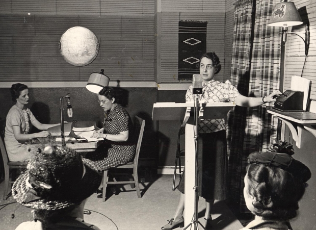 Home Economist Aline Hazard Broadcasting the "Homemaker's Program" on Wisconsin Public Radio.